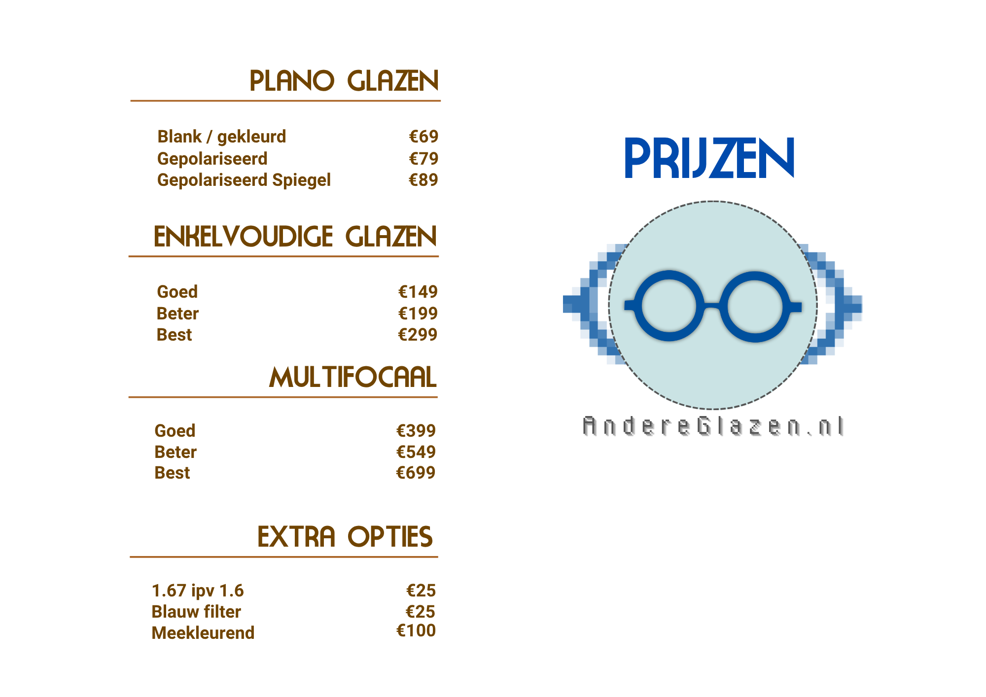 AndereGlazen.nl is onderdeel van Opticien op de Koffie en richt zich op klanten die alleen nieuwe glazen willen.